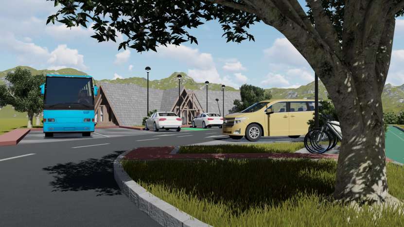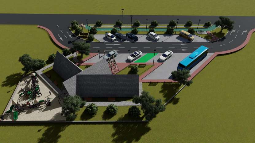 Parcarea va avea o suprafață totală de 2323 mp și va avea amenajate 18 spații de parcare, dintre care 15 spații vor fi pentru autoturisme, 2 spații pentru autocare și un spațiu pentru persoane cu dizabilități. De asemenea, vor fi construite grupuri sanitare, spațiu de joacă pentru copii, pistă de cicliști, spațiu de relaxare pentru cicliști și pentru conducătorii auto și stații de electrice de încărcare a vehiculelor.
