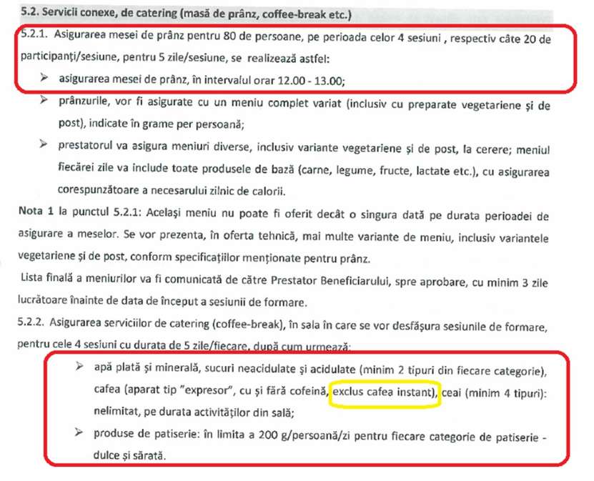 Nu putem să nu observăm cerințele din caietul de sarcini al angajațiilor cu privire la serviciile de catering: